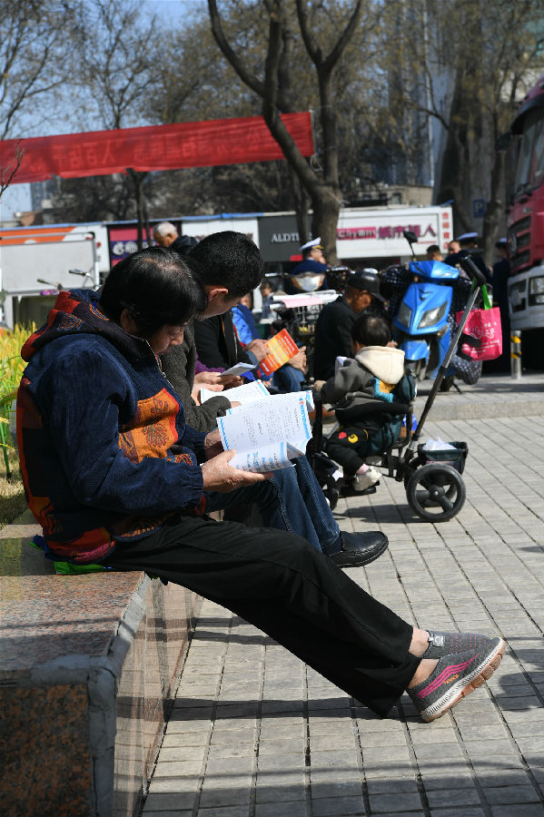 我委成員發(fā)放宣傳彩頁(yè)