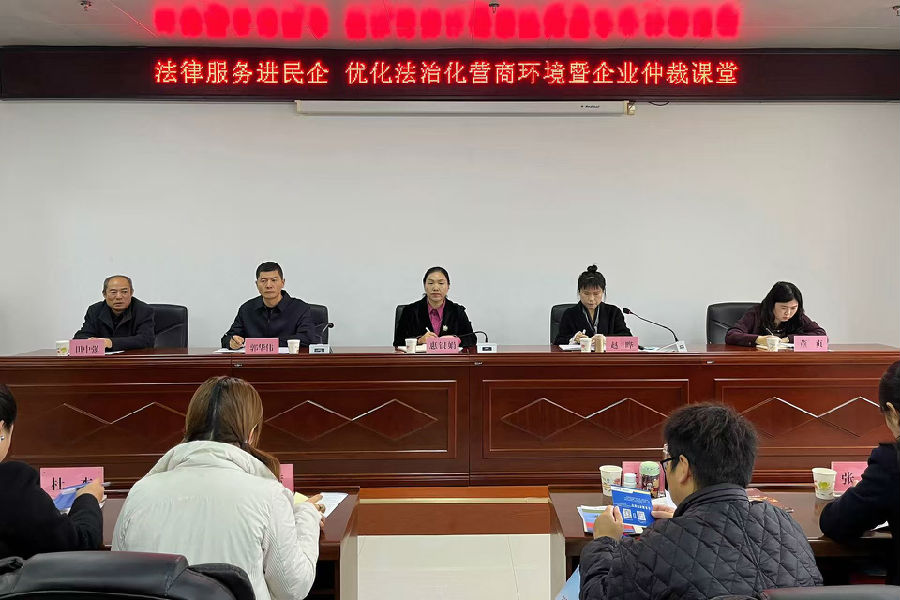 活動(dòng)中,渭南仲裁委員會(huì)圍繞新修訂的《仲裁法》進(jìn)行專題授課,通過(guò)典型案例分析,詳細(xì)闡述了仲裁在解決商事糾紛中體現(xiàn)的高效、保密、專業(yè)等優(yōu)勢(shì),并就仲裁程序要點(diǎn)進(jìn)行了實(shí)務(wù)講解。在交流環(huán)節(jié),渭南仲裁委與區(qū)公證處、法律援助中心等工作人員現(xiàn)場(chǎng)解答了企業(yè)代表提出的相關(guān)問(wèn)題。