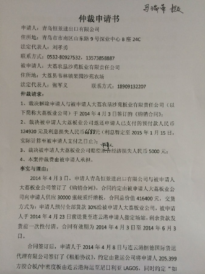 [2015]渭仲字第5號案件公告