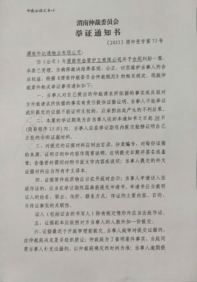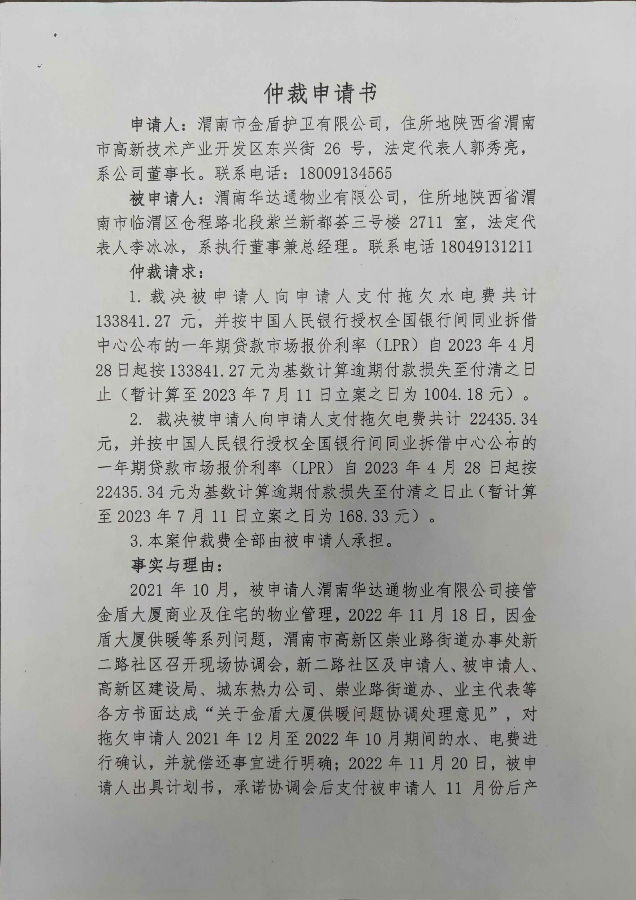 渭南市金盾護衛(wèi)有限公司與渭南華達通物業(yè)有限公司合同糾紛案公告