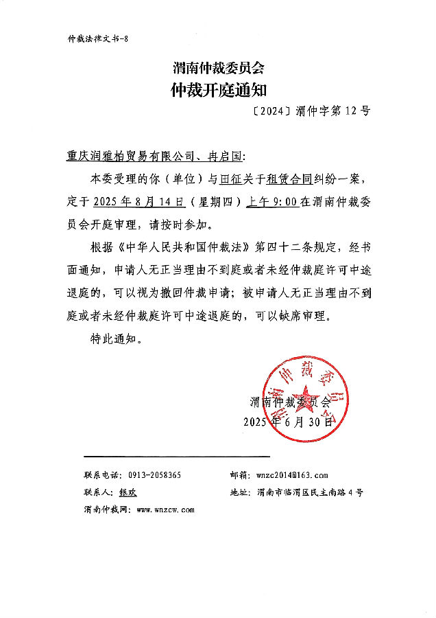 重慶潤雅柏貿(mào)易有限公司、冉啟國與田征租賃合同糾紛案公告