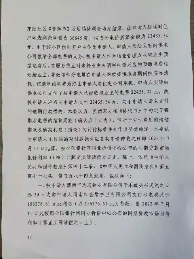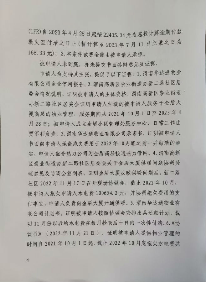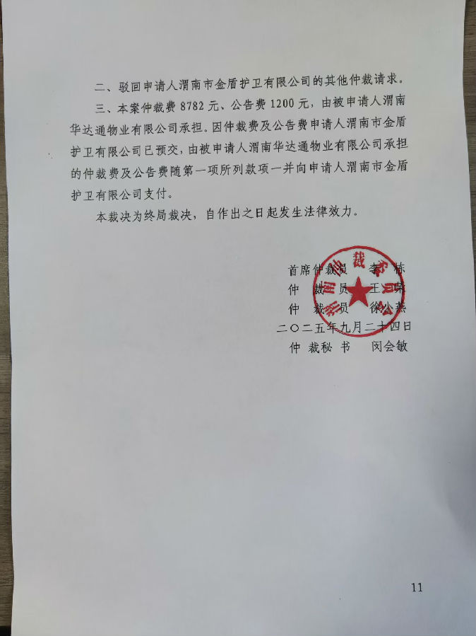 渭南市金盾護(hù)衛(wèi)有限公司與渭南華達(dá)通物業(yè)有限公司合同糾紛案公告
